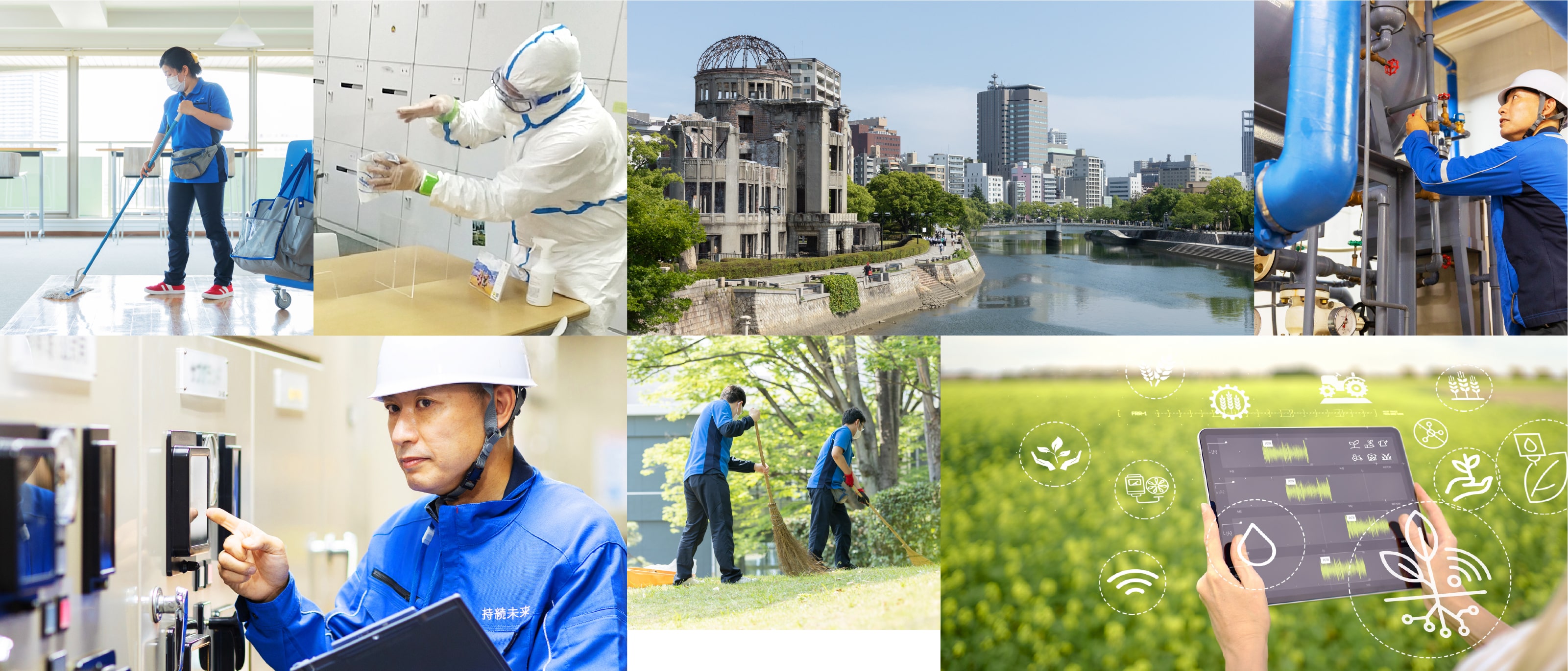 建物・施設の空間を、安全・快適に過ごせるよう管理する。お預かりする大切な資産を、未来も持続的に使用できるように管理する。現状では持続困難な事業課題を、本当に使えるDXで解決する。こうした多様な事業が私たち持続未来の仕事です。
