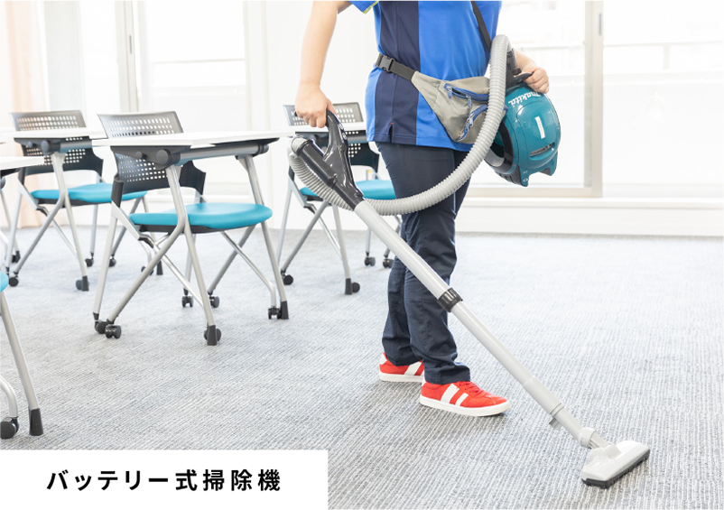 当社ではAI掃除機を早期に導入し、試行錯誤を繰り返しながら使用方法を確立してきました。現時点では人しか作業できない部分、人の方が得意な部分、逆にAI掃除機の疲れない、作業時間を問わないといった強みが生きる場面など様々な状況が同じ施設に混在しています。私たちは人とAIを最適に組み合わせ、最も効果的に現場管理を行います。