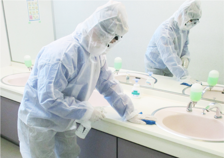 当社では、日常的に清掃業務を請け負っていた物件の利用者から陽性者が出たことにより、2020(令和2)年3月に初めて実施し、2022(令和4)年7月現在で100件以上の消毒作業を実施させていただきました。