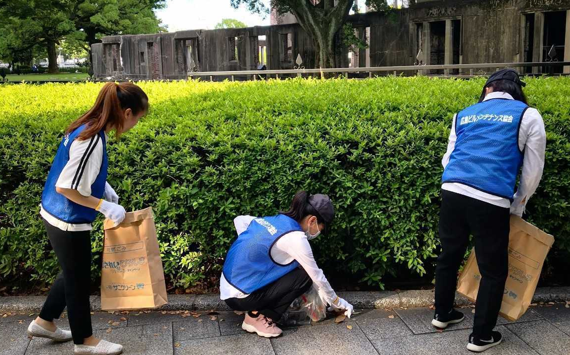 「クリーンウォークひろしま」「クリーン大田川」「原爆慰霊祭翌日の平和公園清掃」に参加しています。